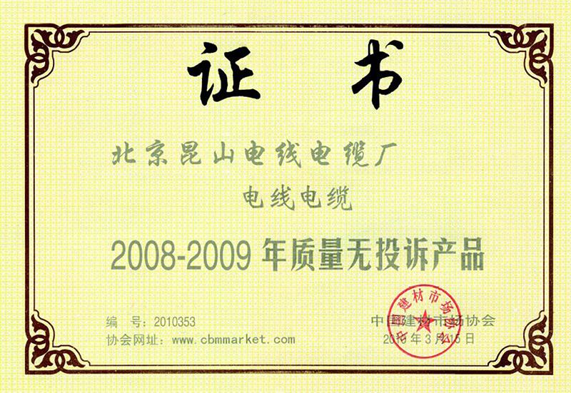 2008-2009年质量无投诉产品
