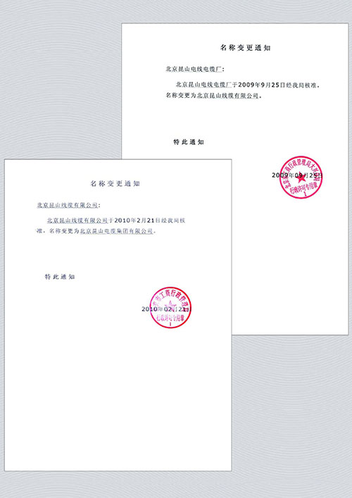 名称变更通知书
