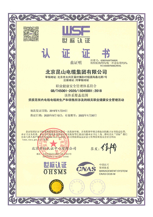 OHSMS认证证书