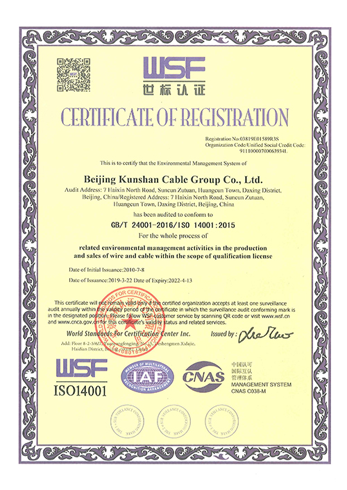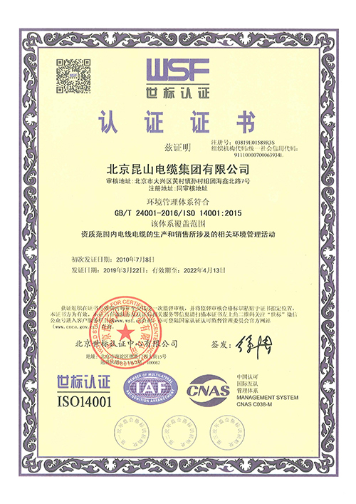 ISO14001认证证书