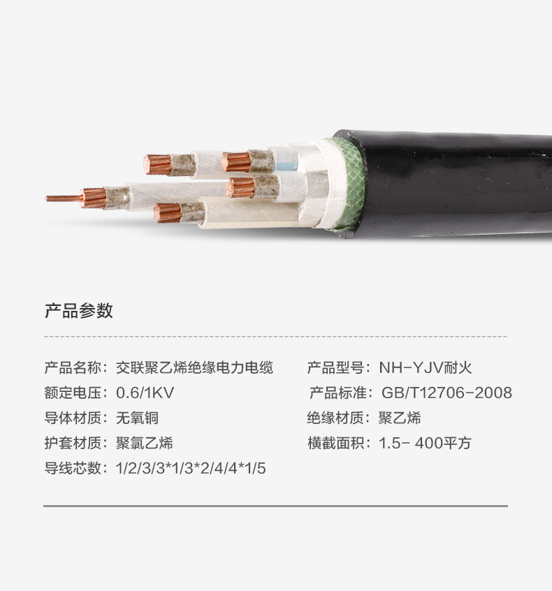 NH-YJV-0.6/1KV耐火交联聚氯乙烯绝缘铜芯电力电缆
