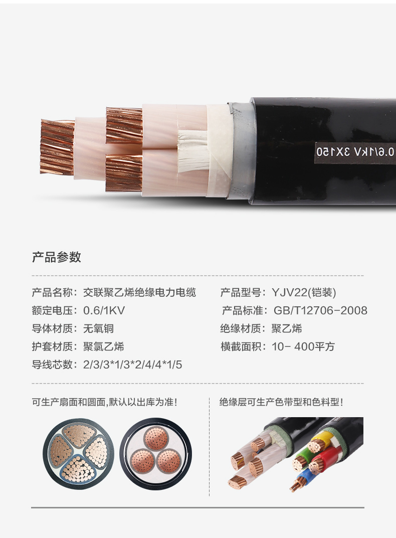 YJV22-0.6/1KV铠装铜带交联铜芯电力电缆线